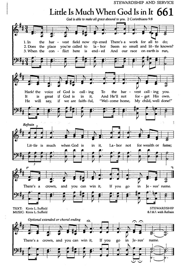 I just put the lyrics of this song to share with.lyrics:little is much when god is in itin the harv. To the harvest calling you. In the harvest field now ripened.
