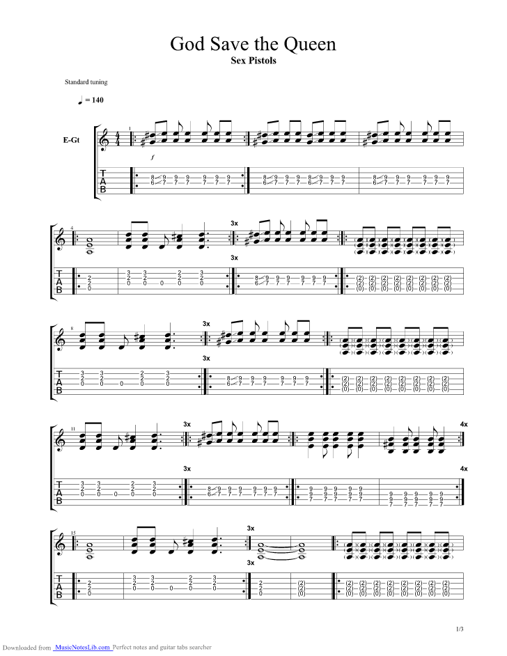This guitar tutorial shows you exactly how to playgod save the qu. God save the queen tab by queen with free online tab. This is the sex pistols god save the queen guitar lesson brought to youby guitarmadeez.com.
